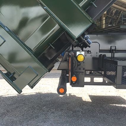 仕様: ●HYVA製テレスコピックシリンダー ●スクラップ運搬 ●後部扉1枚横開き式 ●VBG社製スライド式リアバンパー |