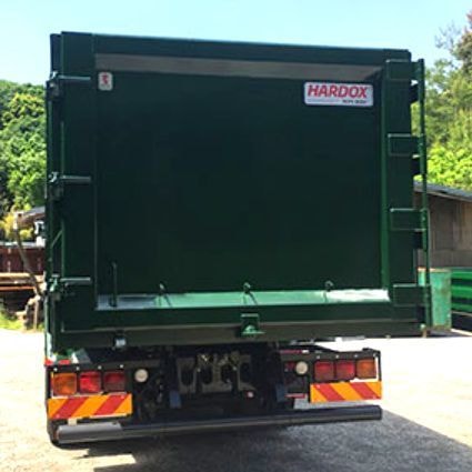 寸法:(内寸) ●L8600×W2300×H1800 100R仕様 使用材料: 底板:HARDOX450 6t 横板:HARDOX450 4t 前板:HARDOX450 4t 扉板:HARDOX450 4t |