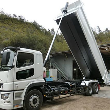 仕様: ●HYVA製テレスコピックシリンダー ●スクラップ運搬 ●後部扉1枚横開き式 ●VBG社製スライド式リアバンパー |
