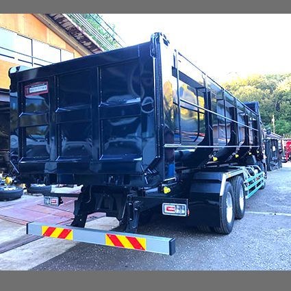 仕様: ●HYVA製テレスコピックシリンダー ●汚泥運搬 ●後部扉1枚ダンプ開き式 ●水密式 ●屋根シート自動開閉装置付き |