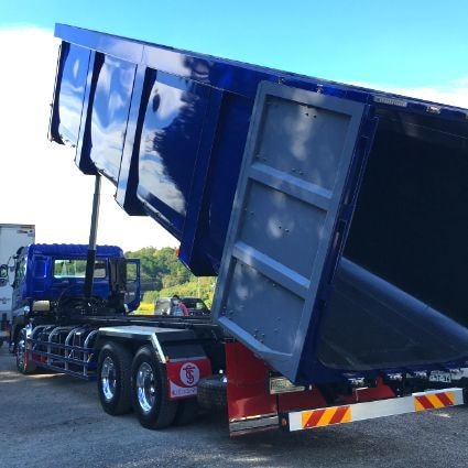 仕様: ●HYVA製テレスコピックシリンダー ●木材チップ運搬 ●後部扉2枚観音開き式 |