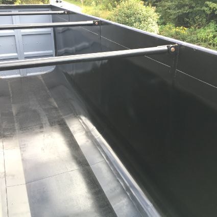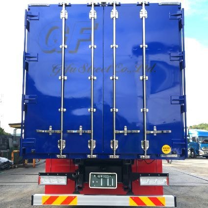 寸法:(内寸) ●L9000×W2300×H2400 300R仕様 使用材料: 底板:HARDOX450 5t 横板:HARDOX450 2.5t 前板:HARDOX450 5t 扉板:HARDOX450 3.2t |