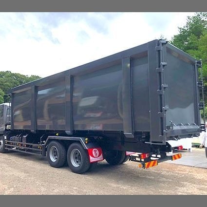 仕様: ●HYVA製テレスコピックシリンダー ●スクラップ運搬 ●後部扉1枚横開き式 ●VBG社製スライド式リアバンパー |