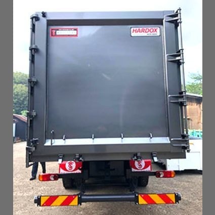 寸法:(内寸) ●L8700×W2300×H2300 角底仕様 使用材料: 底板:HARDOX450 5t 横板:HARDOX450 4t 前板:HARDOX450 4t 扉板:HARDOX450 4t |