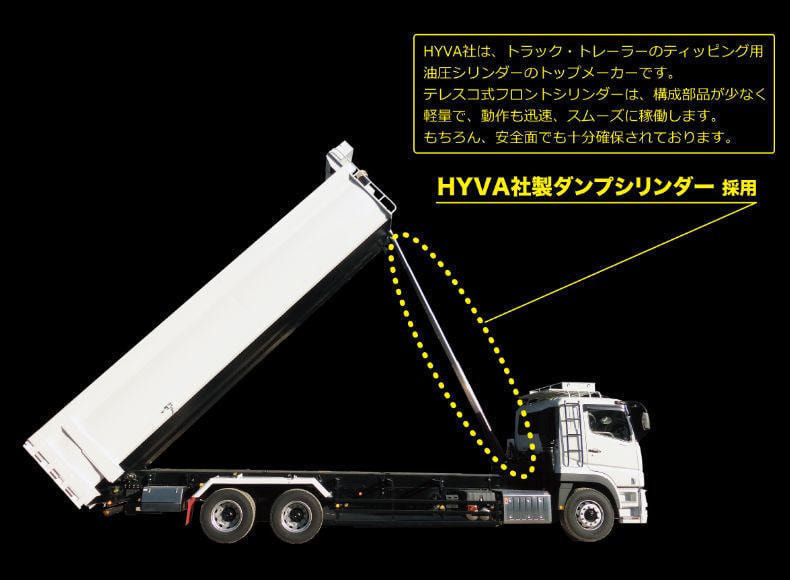 欧米で主流のHYVA社製ダンプシリンダーを採用。